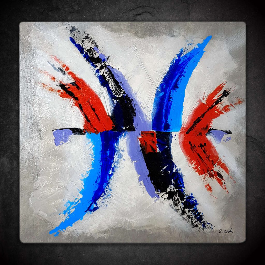 J'aime me lancer des défis, l'art abstrait ou contemporain est un challenge de chaque instant. Une toile blanche, dès lors que j'y ai mis les clés, prend vie. Je mets de la musique, puis je pars dans le monde de la création. Lorsque je ne suis pas satisfaite de moi, du résultat, je laisse sécher la toile. Puis vient le moment de la vengeance où le couperet tombe et le gesso fait son apparition pour blanchir ma toile. Elle retrouve, presque, sa virginité, quelques reliefs en plus, et est prête à passer sous mes mains !