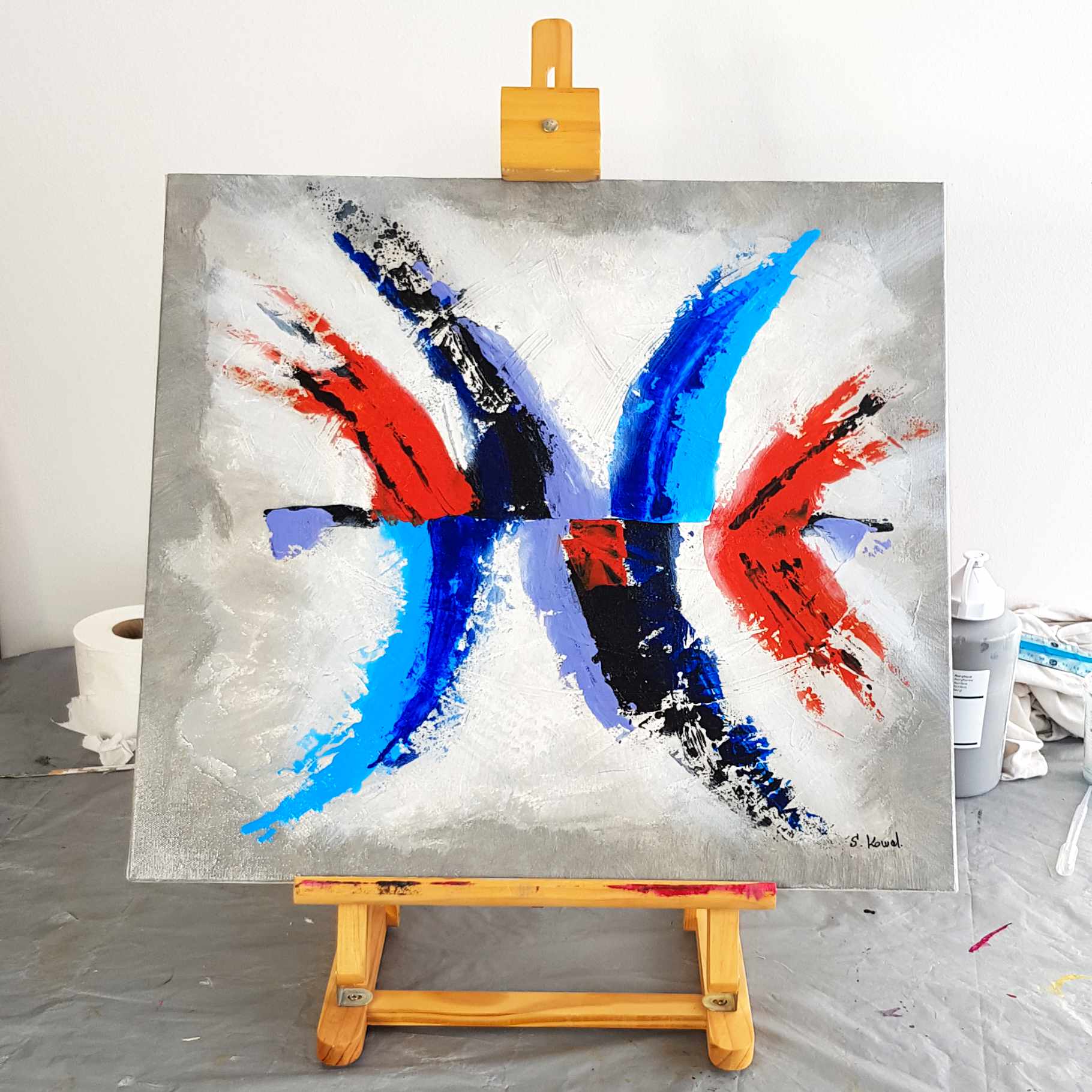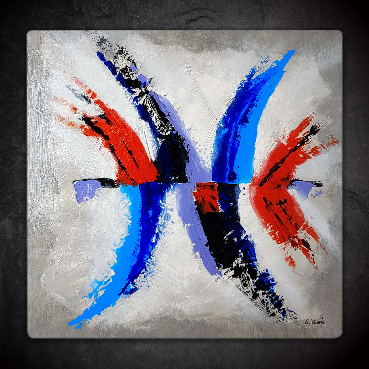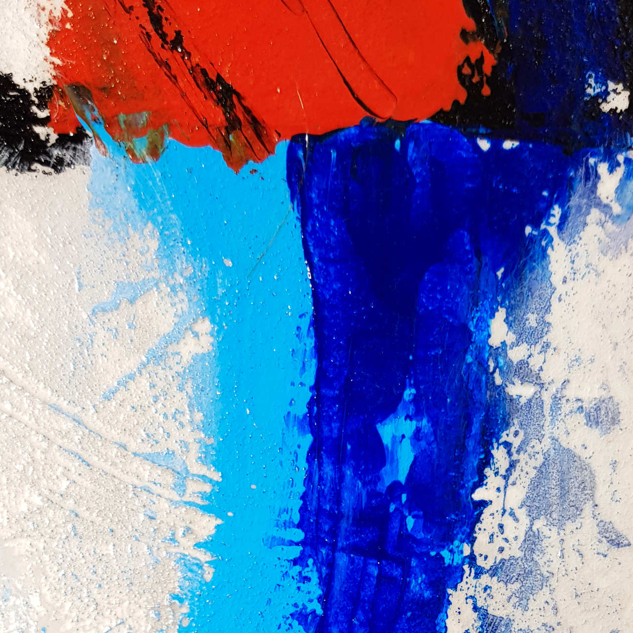 Œuvre contemporaine aux couleurs très vives sur un fond en molding paste.
