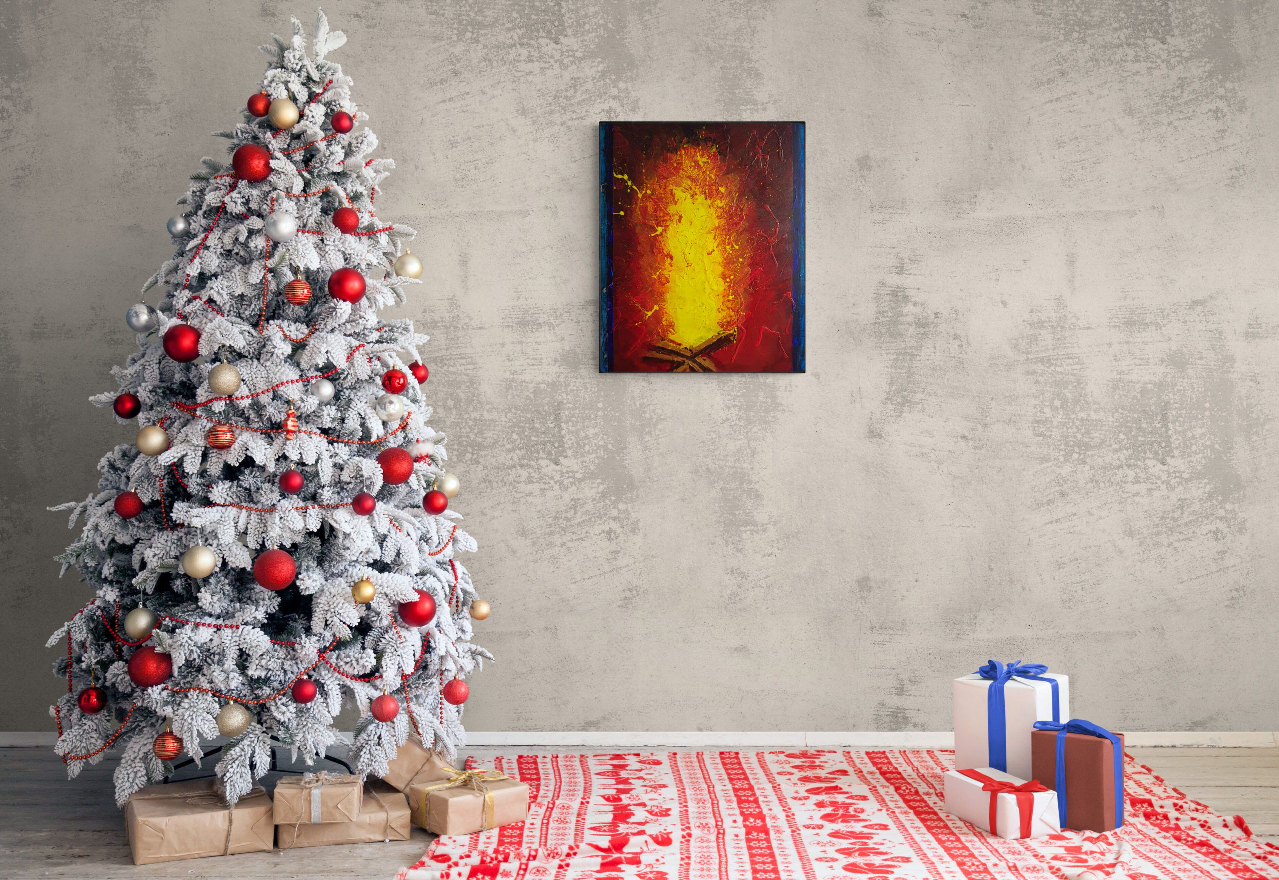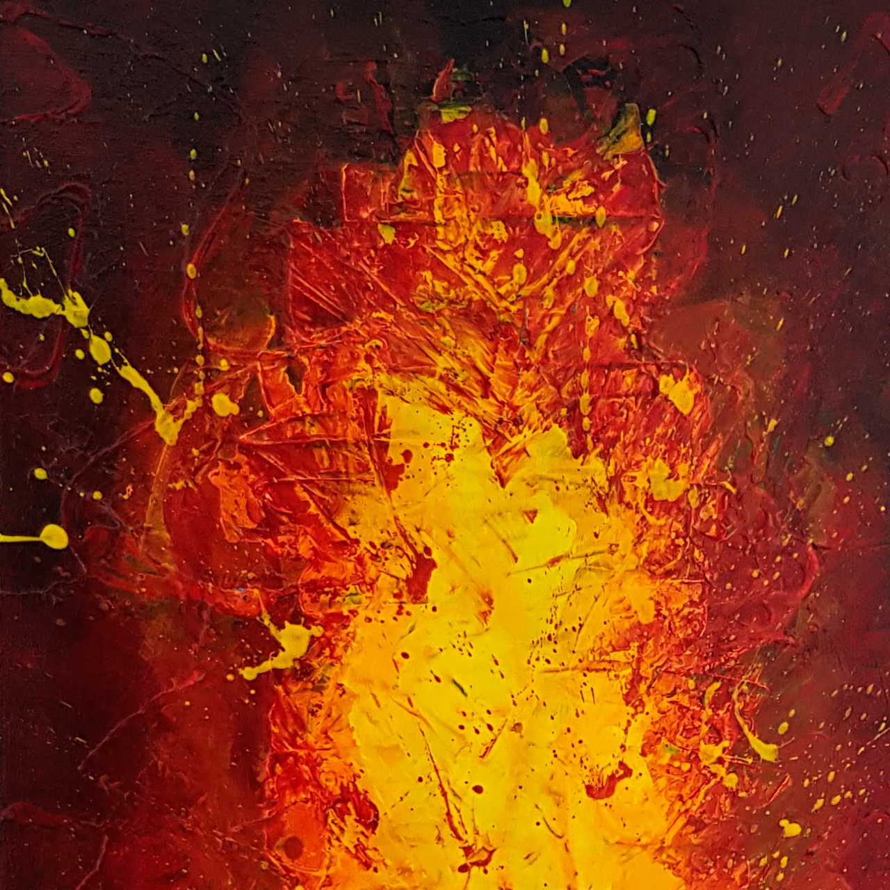 Cette œuvre représente un feu, qui réchauffe de par ses couleurs. La toile en lin de 400g/m² et le châssis sont robustes. Les bords sont peints donc prêts à poser.